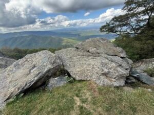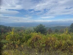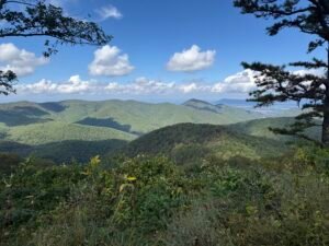 This afternoon, we cruised down the Blue Ridge Parkway, stopping at overlooks and snapping photos. A ranger at the visitor center warned Bill that nasty weather was rolling in around the 60-mile mark, so we turned back north toward Loft Mountain before the storm caught up.